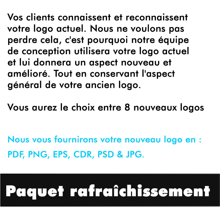 Notre équipe de conception s'en servira comme point de départ. Nous vous proposerons également des concepts de logo avec les couleurs qui nous semblent les plus appropriées.